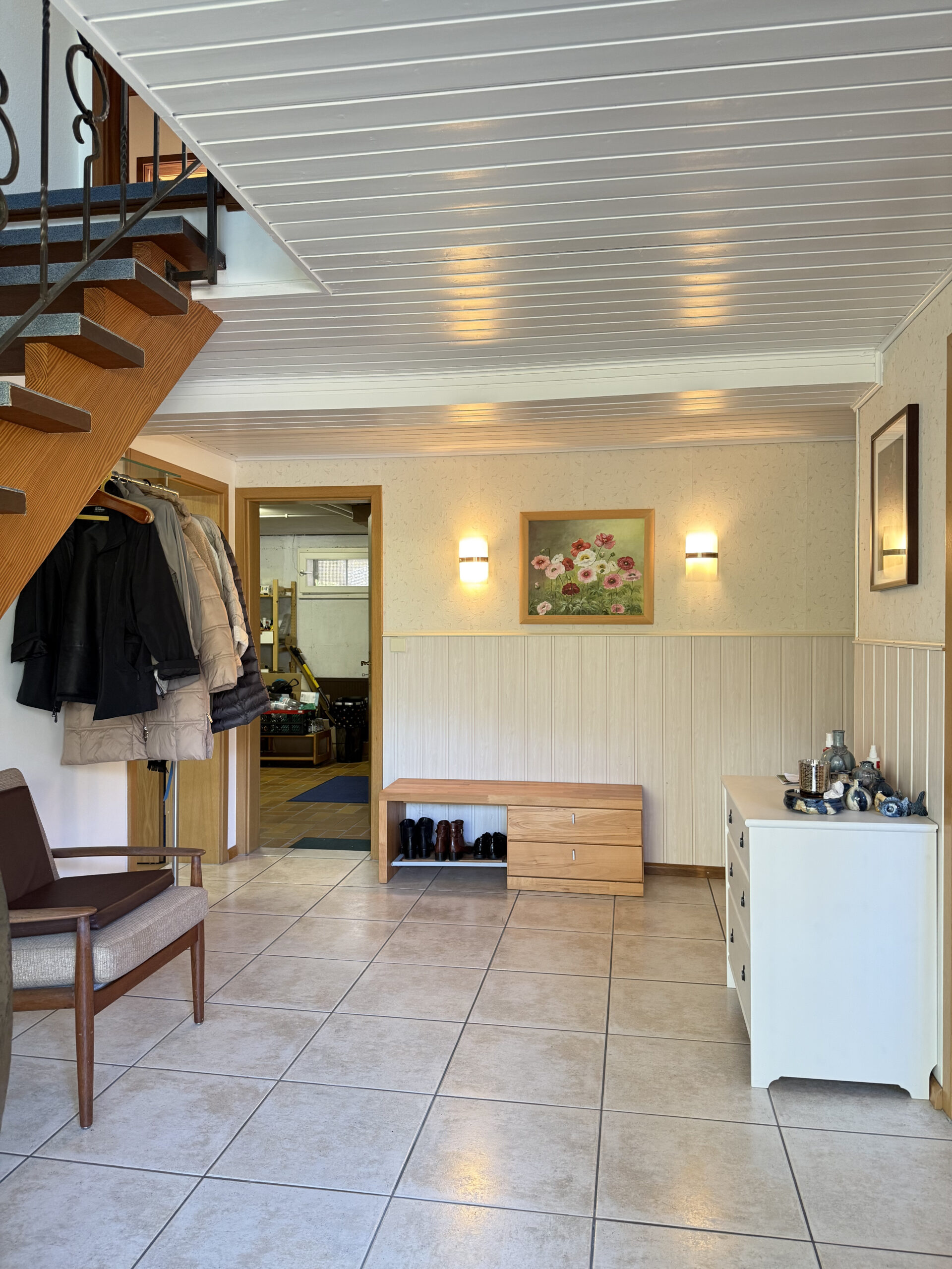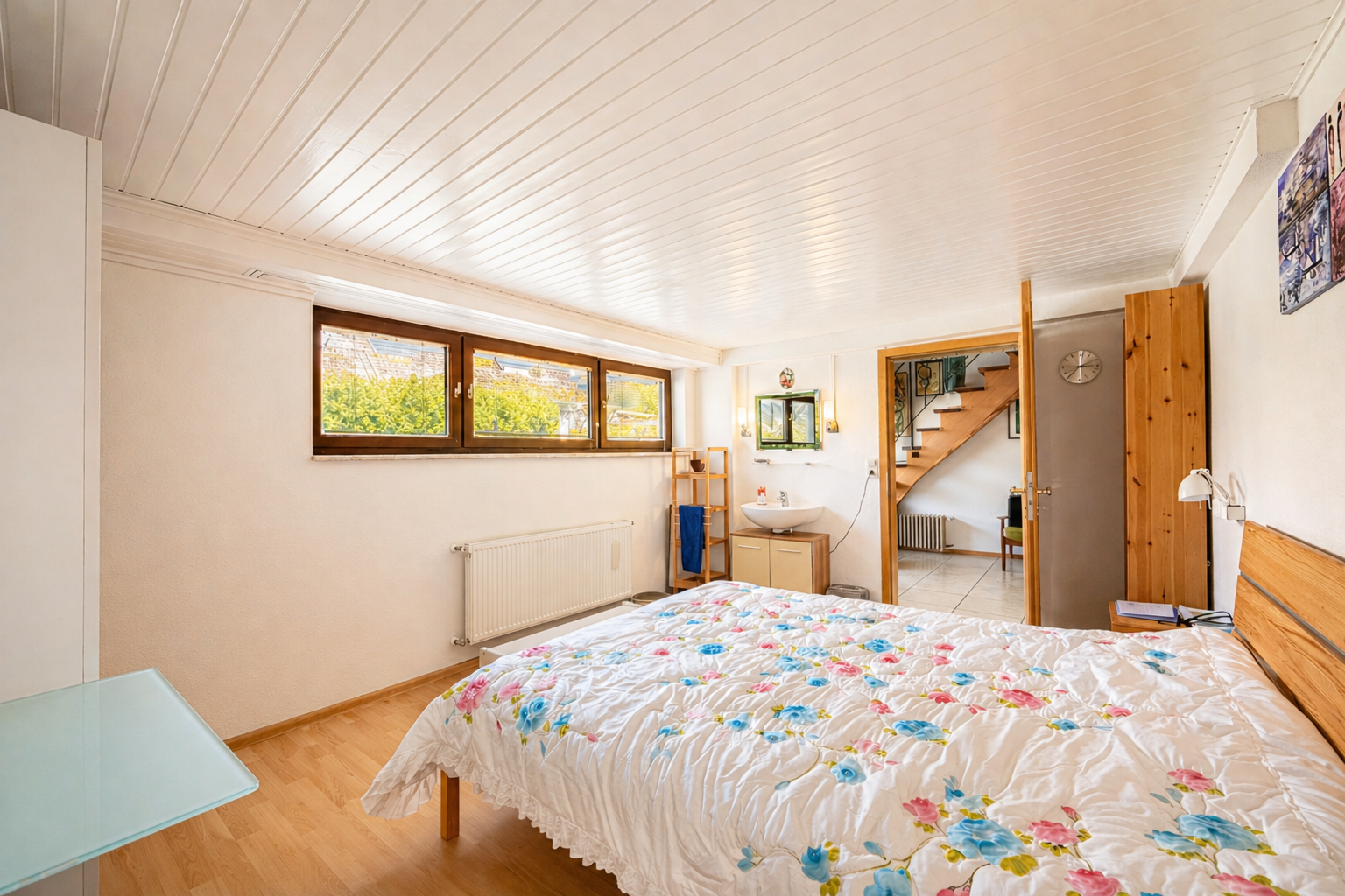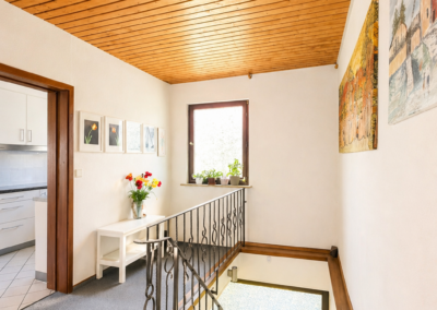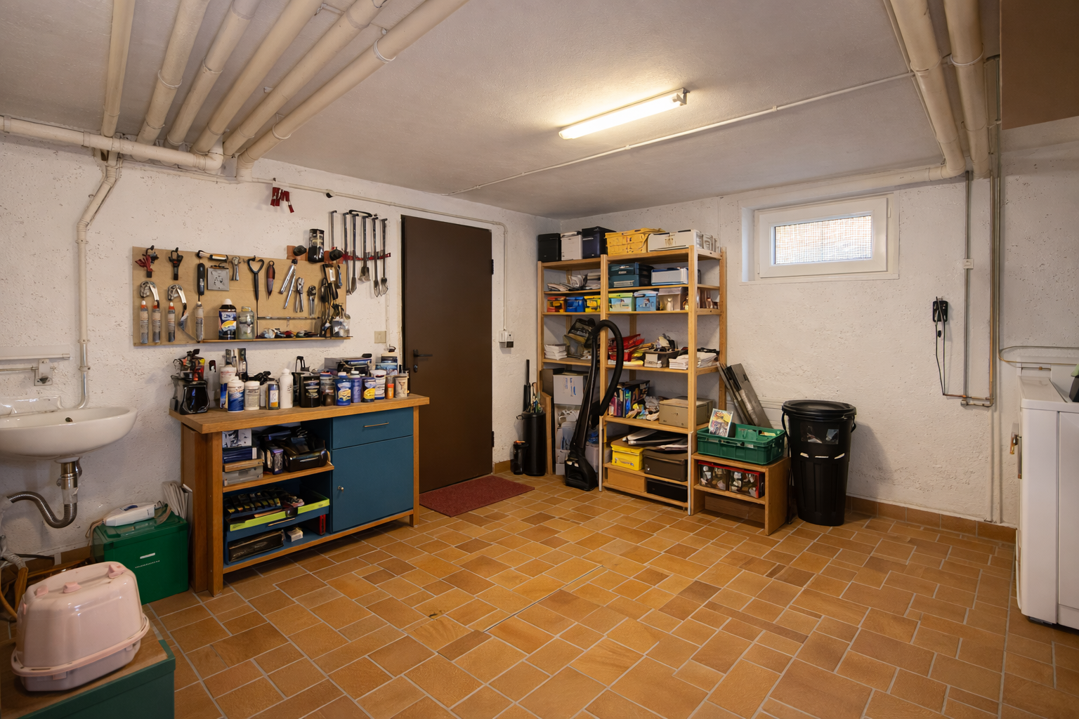 Die besondere Topografie des Grundstücks verleiht dem Haus einen eigenen Charakter. Durch die leichte Hanglage wirkt das Untergeschoss zur Straßenseite wie ein vollwertiges Erdgeschoss. Hier befindet sich neben der Garage auch ein vielseitig nutzbarer Bereich, ideal für Büro, Kinderzimmer, Gäste oder Hobby, ergänzt durch praktische Keller und Abstellräume.
