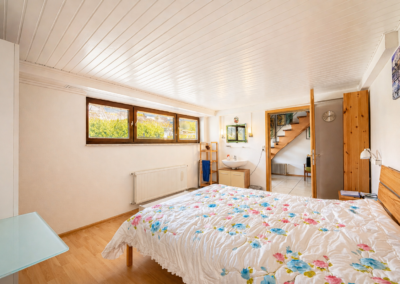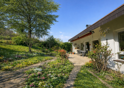 Besonders hervorzuheben ist die ruhige Lage ohne Durchgangsverkehr, direkt angrenzend an Wiesen und Wald. Mit etwas Glück lassen sich von der Terrasse aus sogar Rehe beobachten.